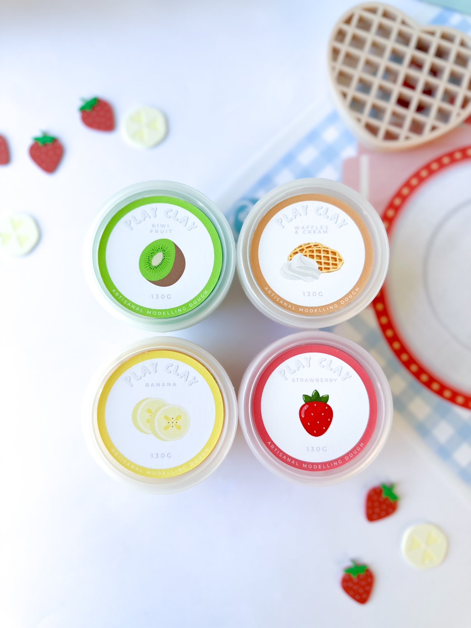 Whip up a stack of playdough imagination with our Waffle Making Play Clay™ Kit, complete with 4 dreamy 130g tubs of Play Clay™ and an eco waffle-making set for endless pretend play fun. Use the 3 x A5 activity templates to design, create, and decorate your delicious waffle dough creations.
